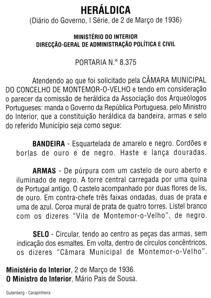 Vila de Montemor-o-Velho - Heráldica - Ed. Gutenberg - Carapinheira