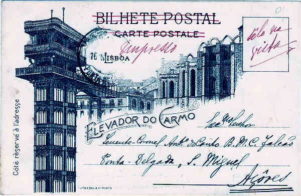 Nº 46 - Barco Rebello carregado com pipas - Editor correios - Dim. 140x91 mm - Usado em 10NOV1912 - Col. A. Monge da Silva (c. 1905)