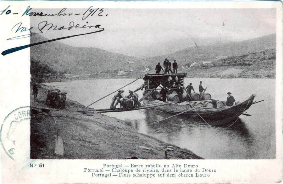 Nº 51 - Barco Rebello carregado no Alto Douro - Editor correios - Dim. 140x91 mm - Usado em 10NOV1912 - Col. A. Monge da Silva (c. 1905)