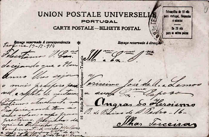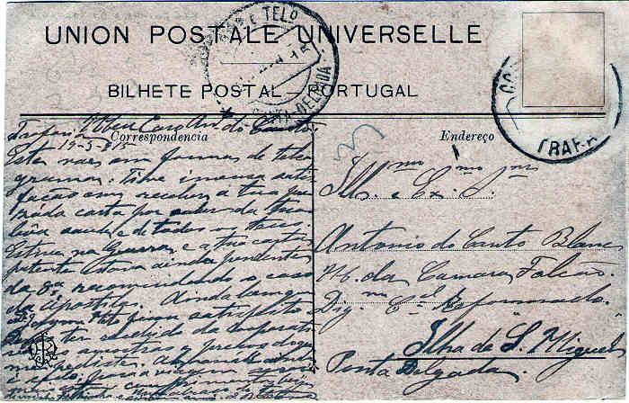 Vista da Praia. Circulado em 1914. (verso) |