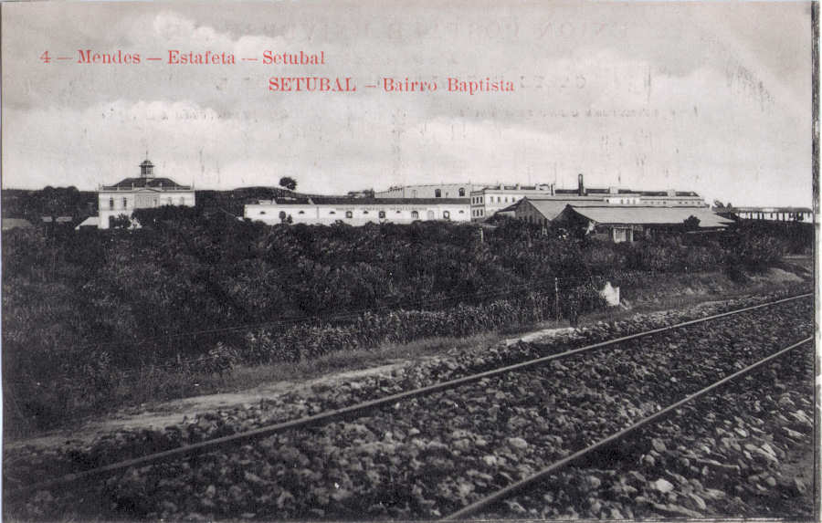 9 - Bairro Batista antes de 1910, vendo-se a linha do comboio. (verso)