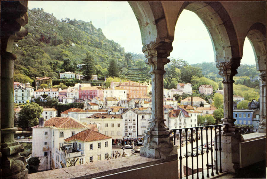 Nº 860 - PALÁCIO NACIONAL DE SINTRA (Portugal) - O Palácio visto dos Castelos dos Mouros - Ed. Col. Passaporte LOTY - SD - Dim. 150x104 mm - Col. Graça Maia