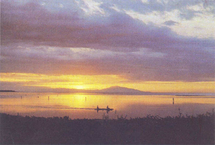 SN - Pescando na Baía de Dili ao pôr do sol - Edição do MNF-Timor - SD - Dim. ???x??? mm - Col. A. Monge da Silva (cerca de 1970)