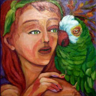 21.A menina e o papagaio II - acrílico 50x50 cm.