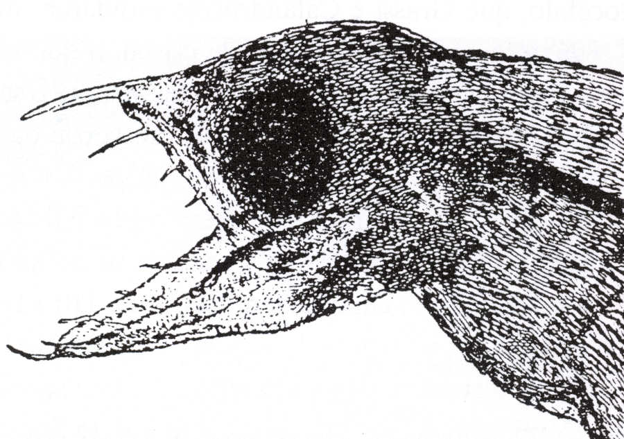 dentição desenvolve-se quando o leptocéfalo tem 40 milímetros.