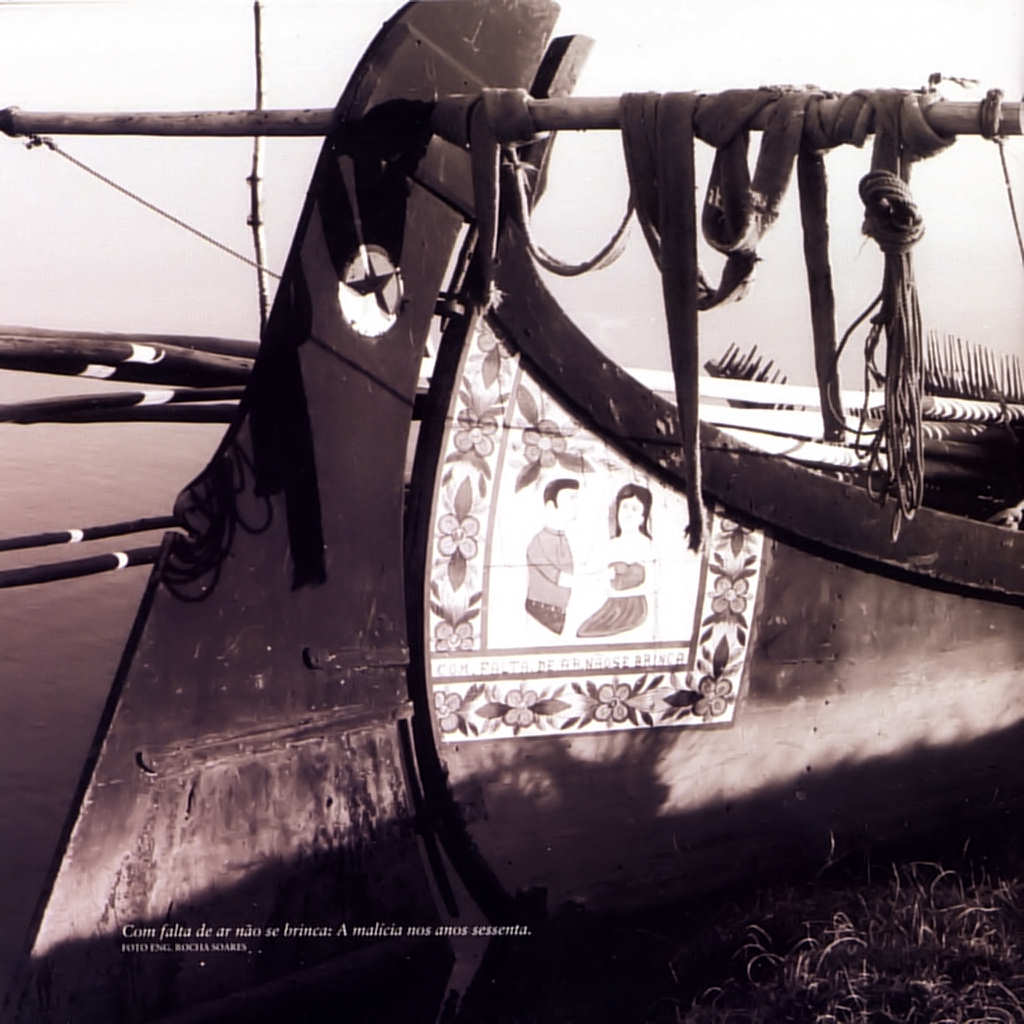 Durante muitos anos eu olhei os moliceiros, vi-os na faina quando eram abundantes, mas o meu olhar para as pinturas das proas e das rés era insonso e, como estes quadros flutuantes, para utilizar uma expressão feliz de Clara Sarmento, eram perecíveis, pela sua permanente exposição ao sol, à chuva, à maresia, pela degradação da madeira ou até devido a fricções e pancadas, as pinturas foram-se sucedendo e modificando assim mesmo, como as folhas das árvores ou as pegadas das pessoas no areal, sem que eu as visse verdadeiramente.