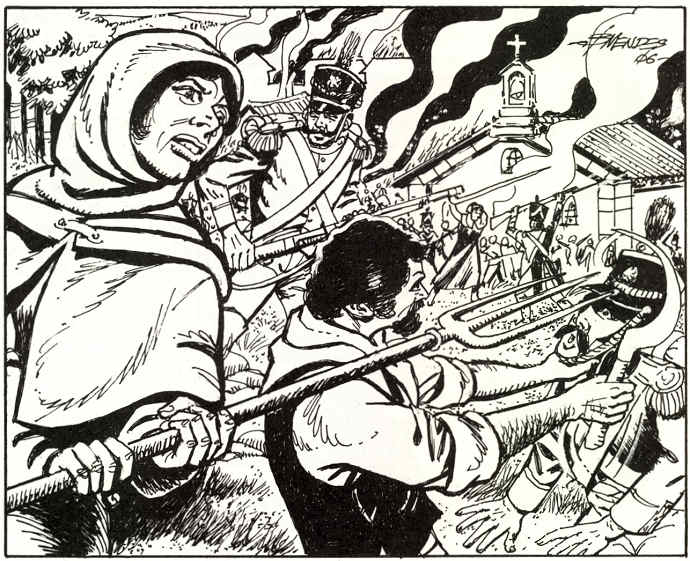 Um dia, porém, acordaram do seu pasmo com o tinir dos sabres, as detonações dos fuzis e a gritaria de quantos se viam atropelados pela besta napoleónica que varria a Europa inteira. Corria o ano de 1811 quando, a 3 de Abril, se deu o combate do Sabugal. Wellington, o amigo inglês, vence Reynier e obriga o poderoso Massena a abandonar Portugal. Vencidos, os franceses fugiam pilhando tudo o que podiam. Nada escapava à sua cobiça. Igrejas e palácios foram passados a pente fino e espoliados de ouros, pratas, obras de arte. As tulhas foram esvaziadas e os animais requisitados. A soldadesca bruta fugia por onde podia, espalhava­-se pelas aldeias e deitava mão aos teres e haveres dos pobres sem cuidar na miséria que deixava para trás. Cabras, ovelhas, burros ou galinhas, os pães do forno ou peças de fumeiro, tudo foi arrestado em nome da besta.