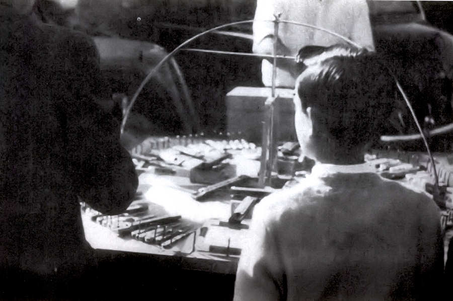extremidade e passeiam o bordo do barco, fazendo-o seguir no sentido