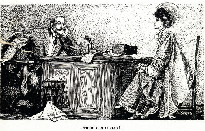 seus livros de contas e ele, tinha-se metido um rosto de mulher e para