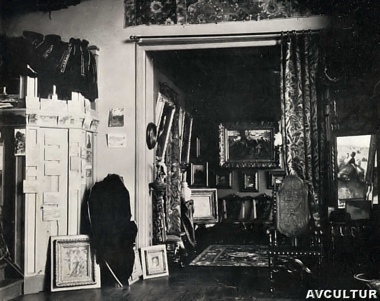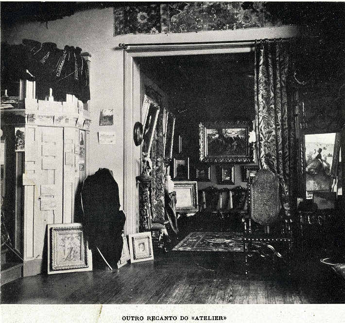 Malhoa ao lado de quadro por ele pintado – /////   Dois aspectos do atelier de Malhoa – /////   Outro recanto do atelier de Malhoa – /////