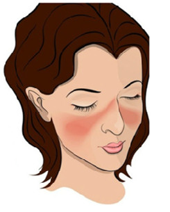 erupção cutânea vermelha no nariz e bochechas que agrava com a