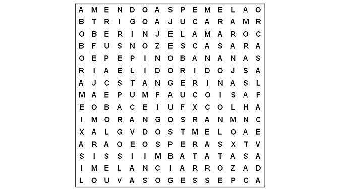 de 33 vegetais comestíveis. As palavras podem estar numa linha oblíqua,