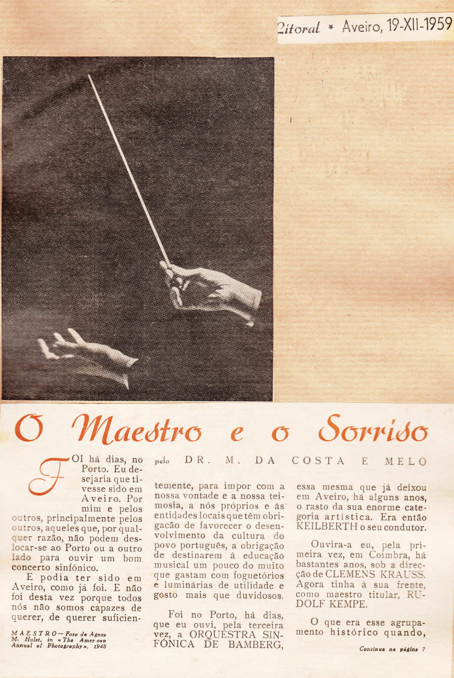 maestro Rudolf Kempe, a que assistiu no teatro Rivoli, no Porto. Ao