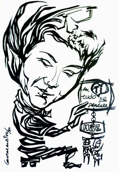 Quando lhe desenhei a caricatura para o seu livro de curso, dei por mim a disfarçar-me no seu cabelo, estou lá! E os filhos estão pendentes de um porta chaves onde se lê: “em ti tudo se pendura MÃE”. É o desenho que aqui junto…