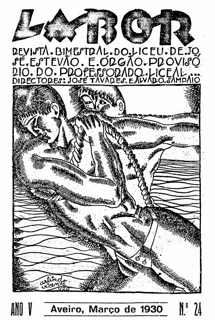 Fama desse talento indubitavelmente ficou no espírito de seus professores e, prova disso, é a capa da LABOR, «revista bimestral do Liceu de José Estêvão e órgão provisório do professorado liceal...», na sua edição de Março de 1930, com o n.º 24, dirigida pelos saudosos professores José Tavares e Álvaro Sampaio. Essa capa reproduz um desenho de Arlindo Vicente, de excelente factura, datado de l929, com dois homens em vigoroso esforço de sirga.