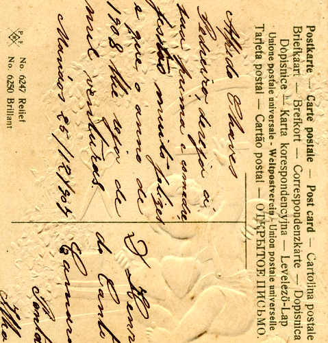 Postal com relevo circulado em 1907.