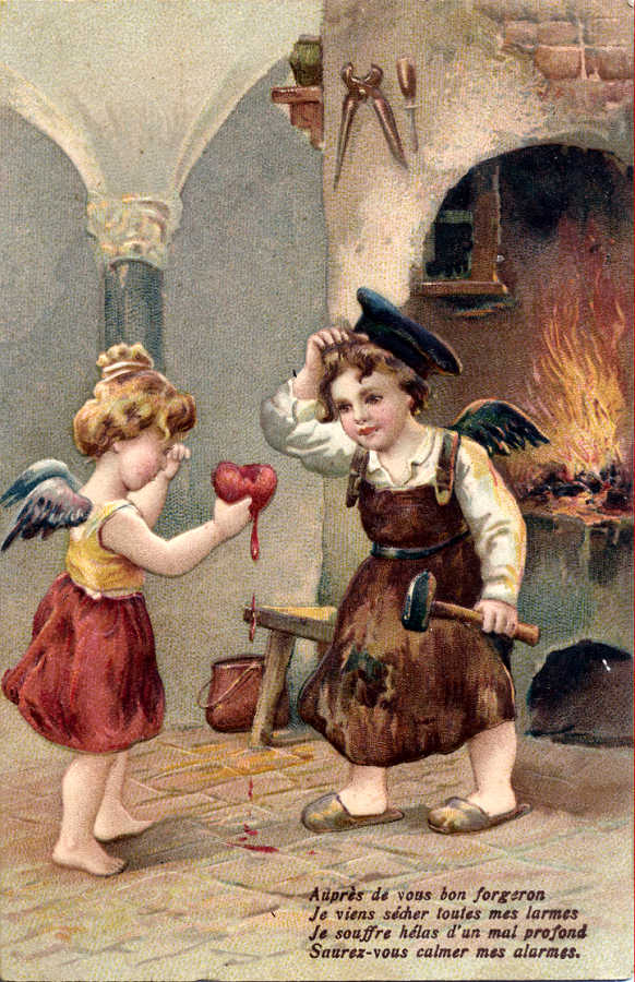 Postal com relevo circulado em 1907. «Junto de vós bom forjador