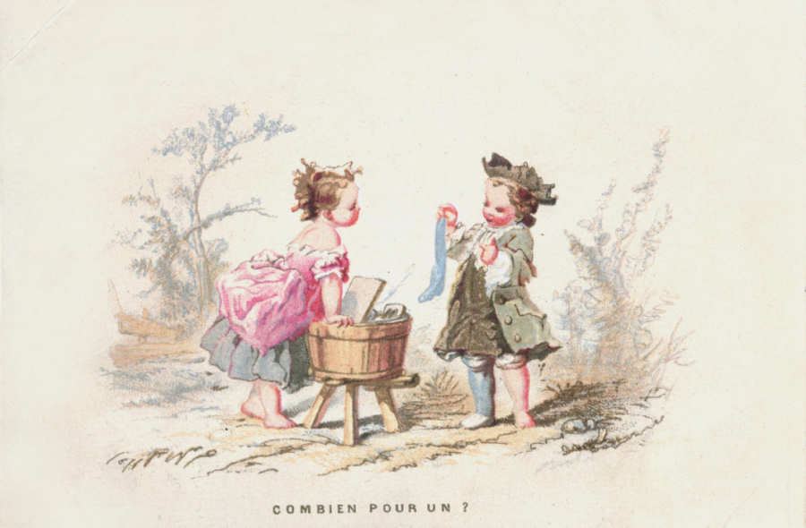 Série francesa nº 7052 com diferentes momentos de um acto
