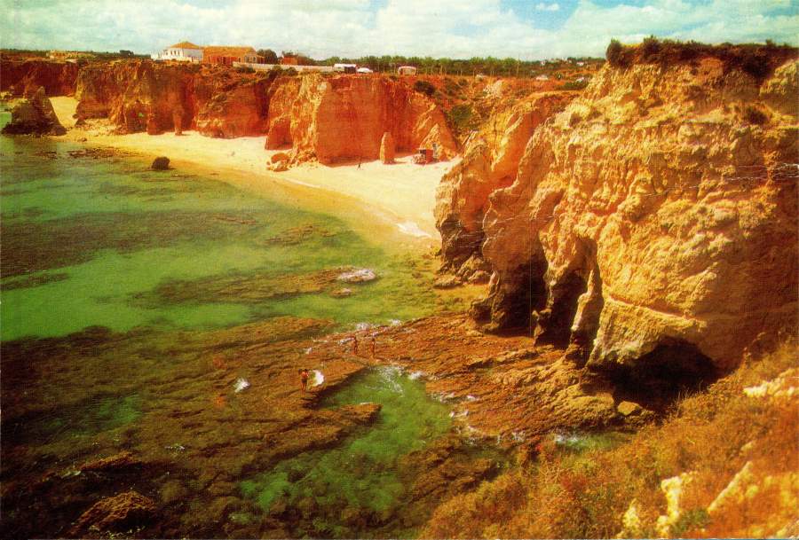 N.º 37 - PORTUGAL-ALGARVE Praia da Rocha - Edição CÉSAR DE SÁ, Av. Álvares Cabral, 40-6º D.tº Tel. 683172, Lisboa -  Fotografia a cores de César de Sá - S/D - Dimensões: 14,8x10 cm. - Col. HJCO (Circulado em 1971)