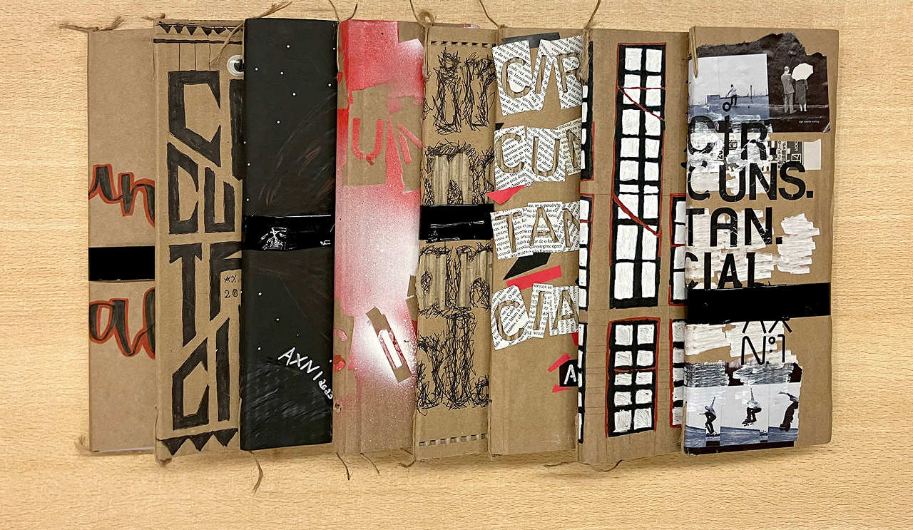 partir de restos de papelão, reinventar capas de livros, criadas uma a
