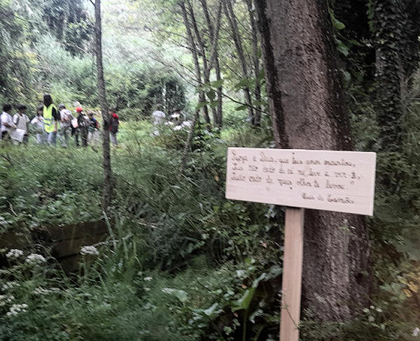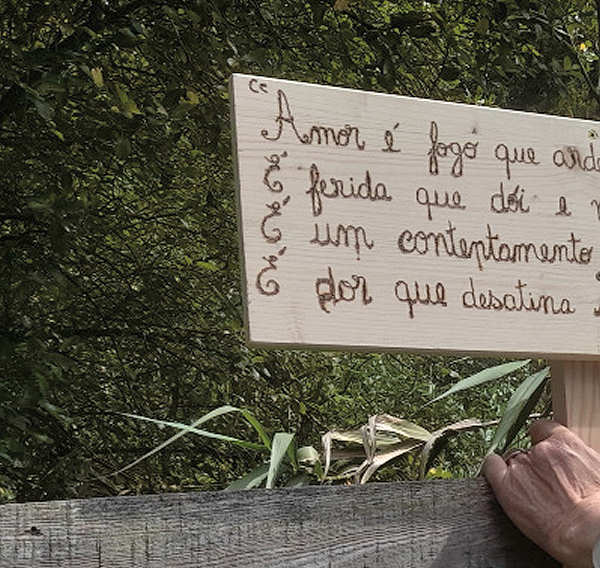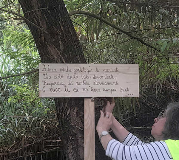 as pessoas para a poesia, colocando placas com estrofes de poemas de