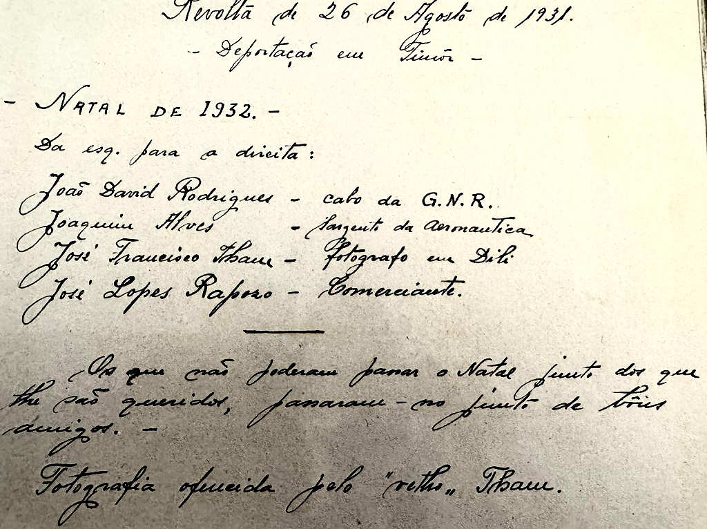 de 26 de Agosto de 1931, deportados na ilha de Ataúro, em Timor.