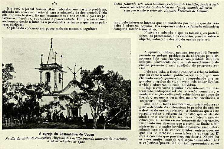 Marques Mano, Problemas escolares (Castanheira do Vouga) – "Brasil-Portugal", n.º 244, 16-03-1909, pp. 62-63.