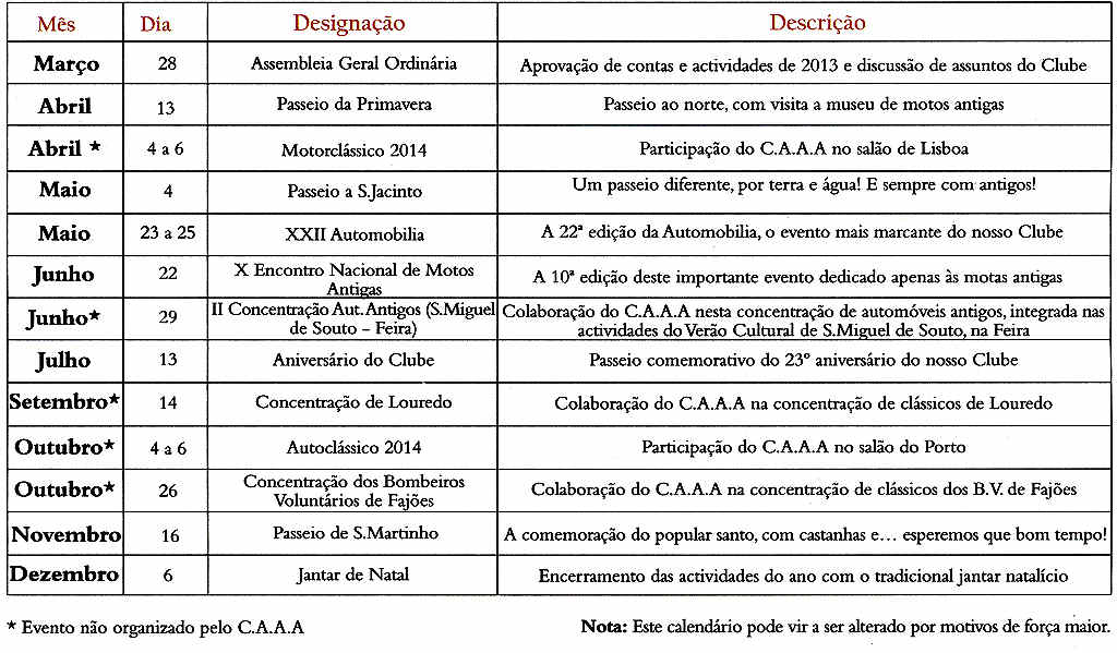próspero 2014, celebrado em mais um calendário do Clube e que seja pleno