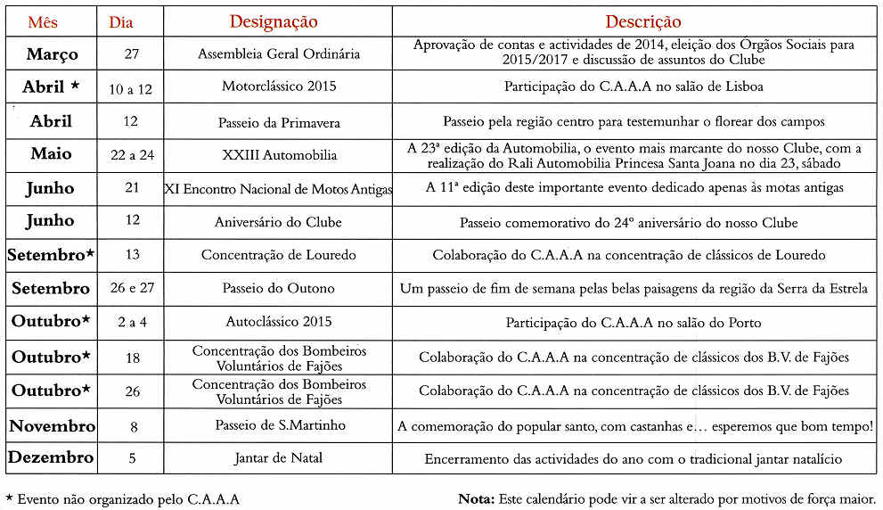 aí, e para além do calendário dos principais passeios e eventos ,que