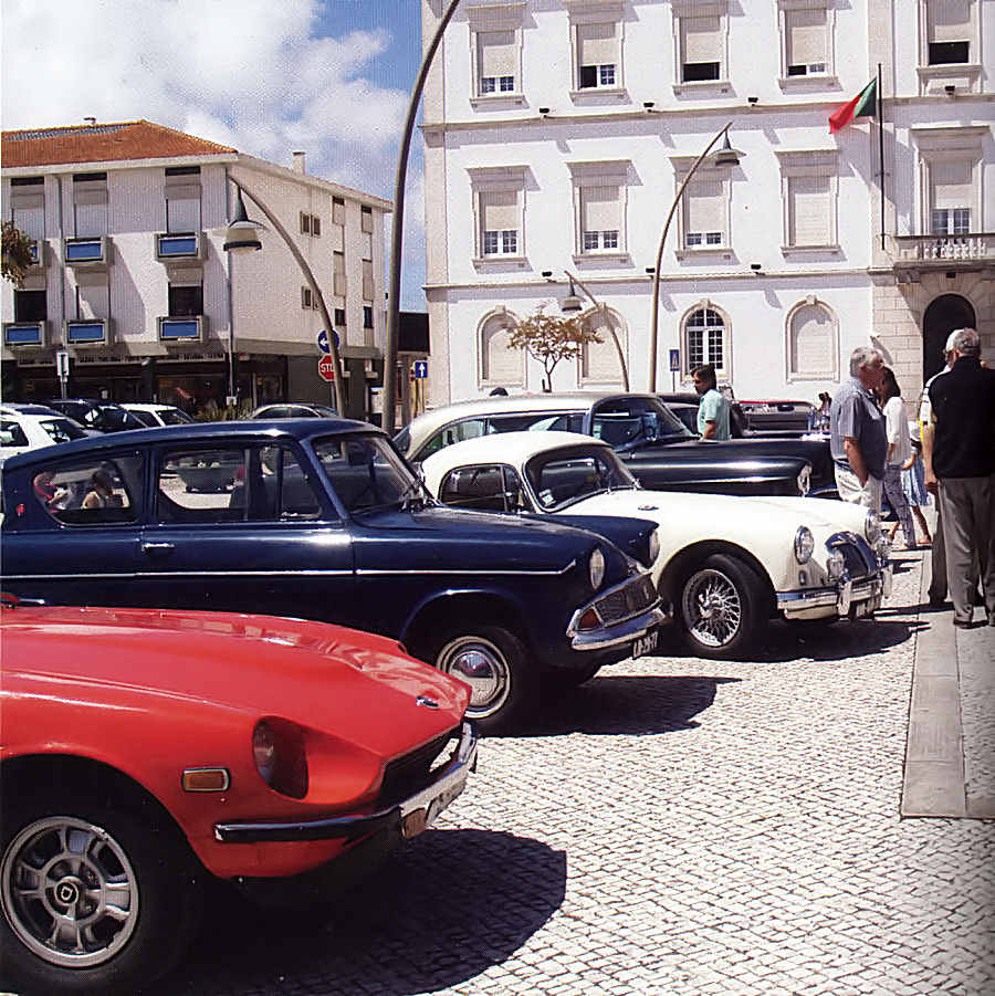 exposição dos veículos, durante o almoço, na Praça Marquês de Pombal.