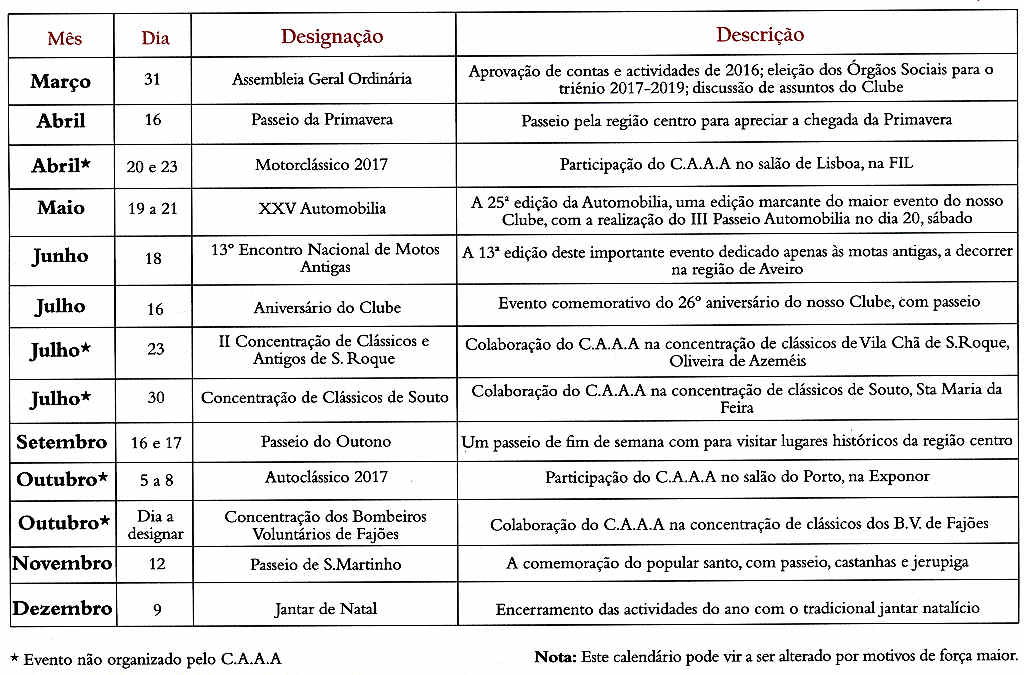 30 os associados do CAAA que aderiram ao evento de clássicos, organizado