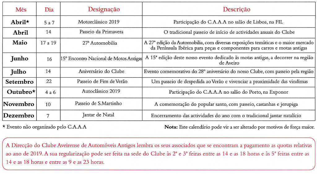 Calendário de Actividades 2019