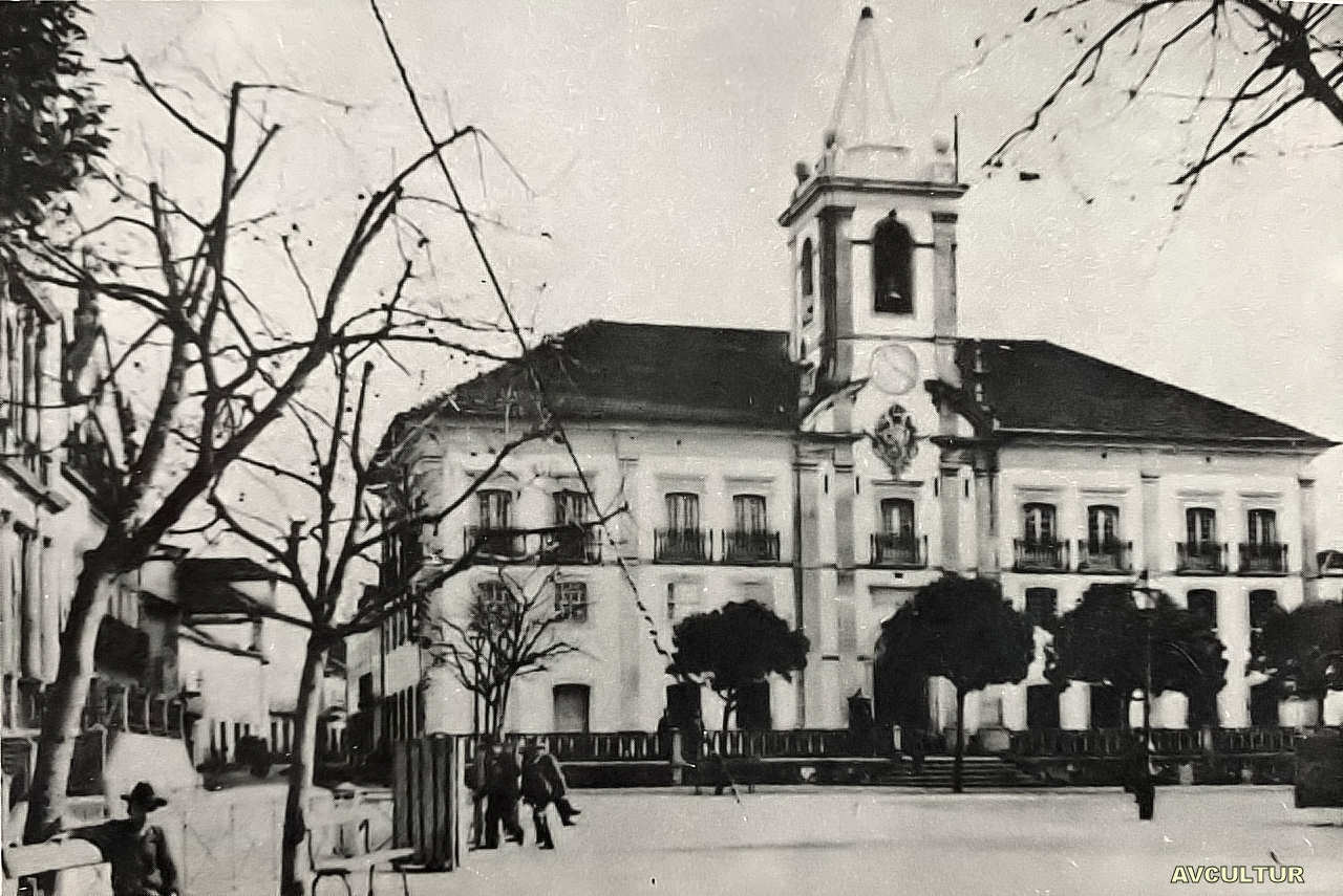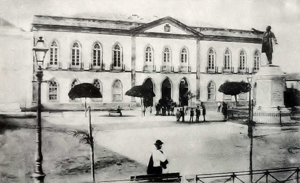 cima a Câmara Municipal, cerca de 1870. Em baixo, o Liceu Nacional de