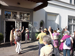 exterior. Antes da fachada da catedral, o Baptistério de S. João Batista.