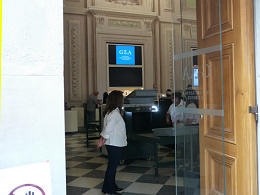 dentro da hora prevista. Uma das portas de serviço. (14:53) |