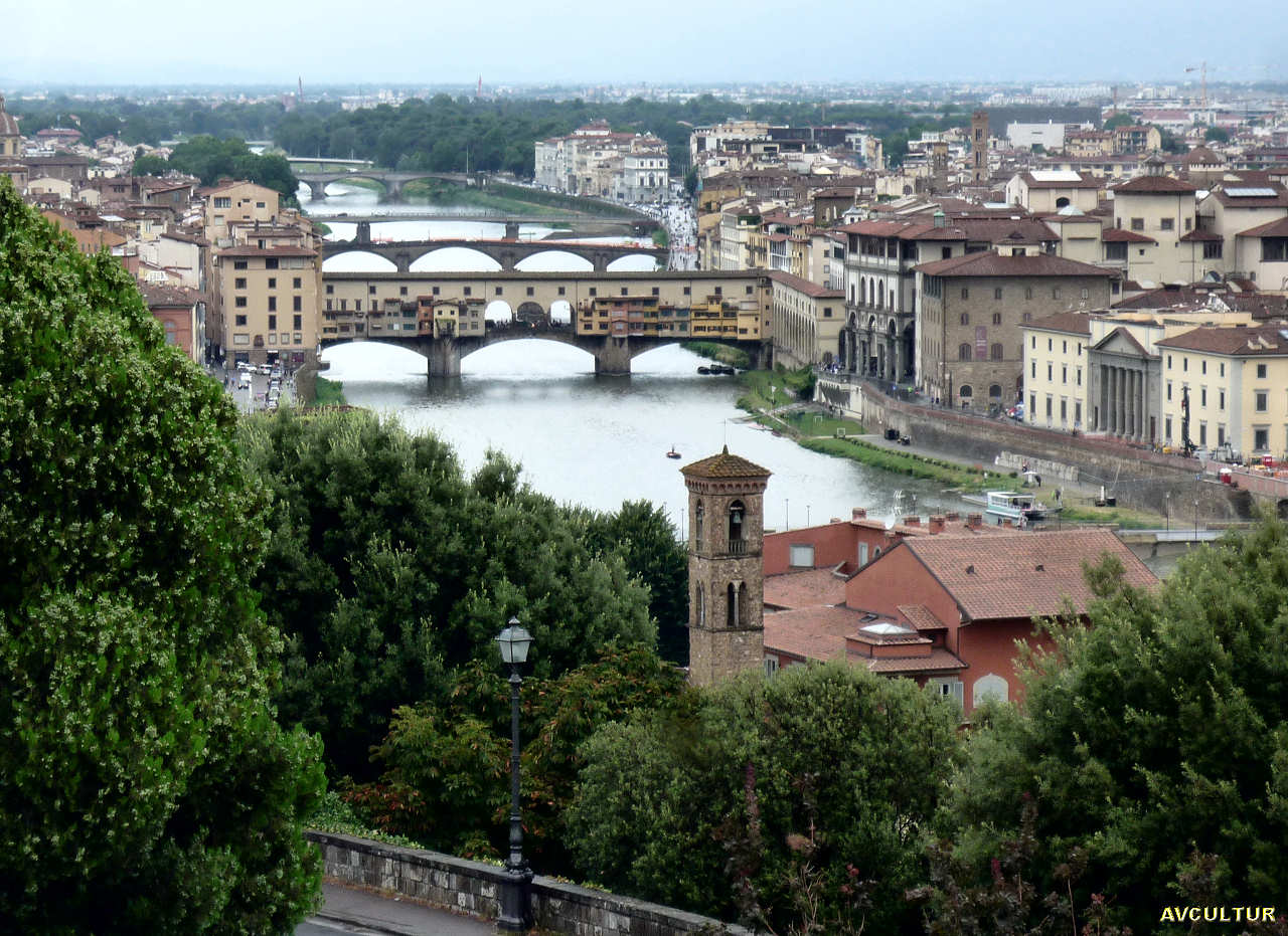 atravessam o rio Arno, com a Ponte Velha em primeiro lugar. |