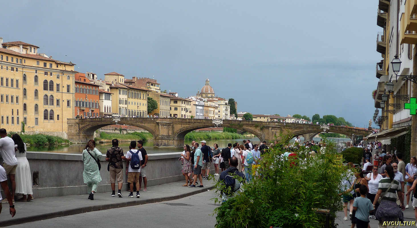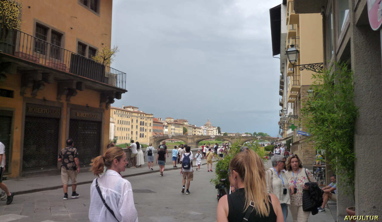 rua por onde viemos, ao longo da margem esquerda do Arno; à direita,