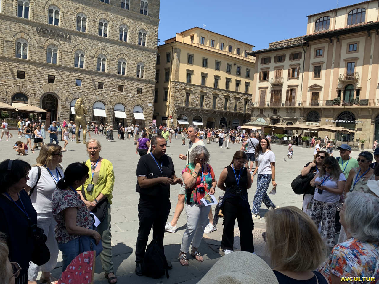 À esquerda, o Palácio Velho com a TORRE DE ARNOLFO; a