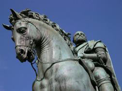 seu pai, Cosme I. A estátua retrata Cosme I montado num cavalo,