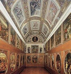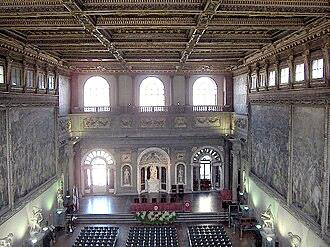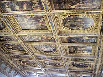 O tecto com 39 painéis foi construído e pintado por Vasari e