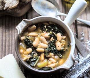 e feijão e engrossada com pão. A palavra “ribollita” na