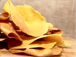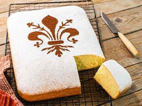 panetone ou pão-de-ló, cortado em fatias finas. É comum