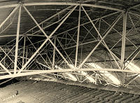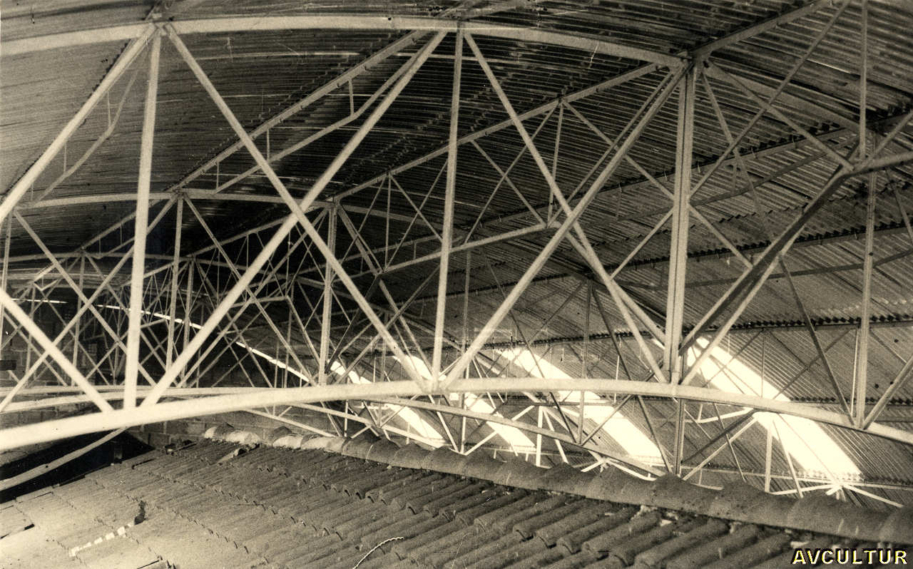 mostrando a estrutura metálica do novo telhado sobre o original. |
