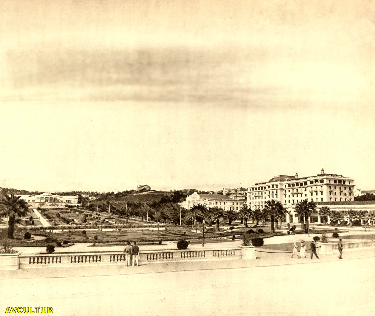 O Parque: o Casino, as Termas, o Hotel do Parque e o Estoril-Palácio-Hotel. – Le Parc: le Casino, les Eaux, l'Hôtel du Parc et l'Estoril-Palácio-Hotel. – The Park: the Casino, the thermal Springs, Park Hotel and Estoril-Palácio-Hotel.