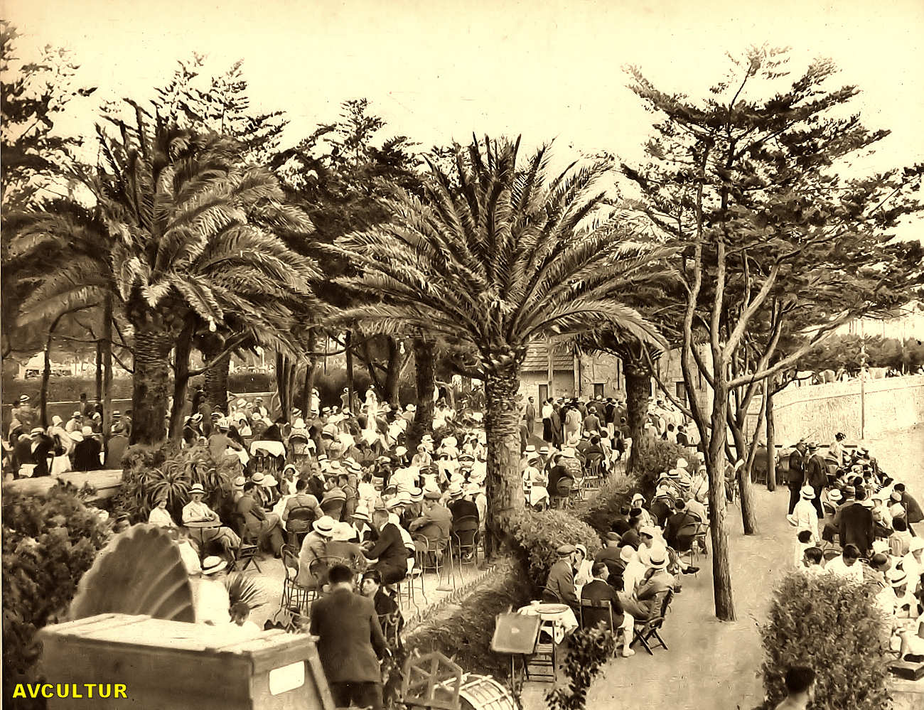 Esplanada do «Tamariz», delicioso ponto de reunião sobre a praia. Esplanade du «Tamariz», merveilleux endroit de rendez-vous sur la plage. Tamariz «Esplanade», delightful and fashionable resort overlooking the beach.