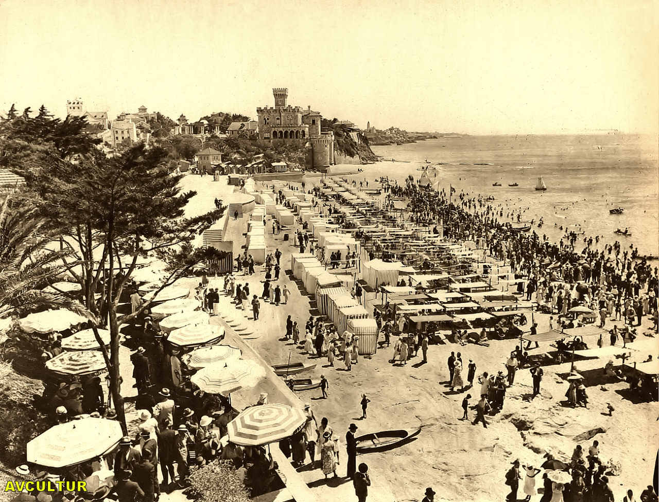 Um trecho da praia, vista da esplanada do «Tamariz». – Un aspect de la plage, vue prise de l'esplanade du «Tamariz». – A corner of the beach seen from the Tamariz Esplanade.