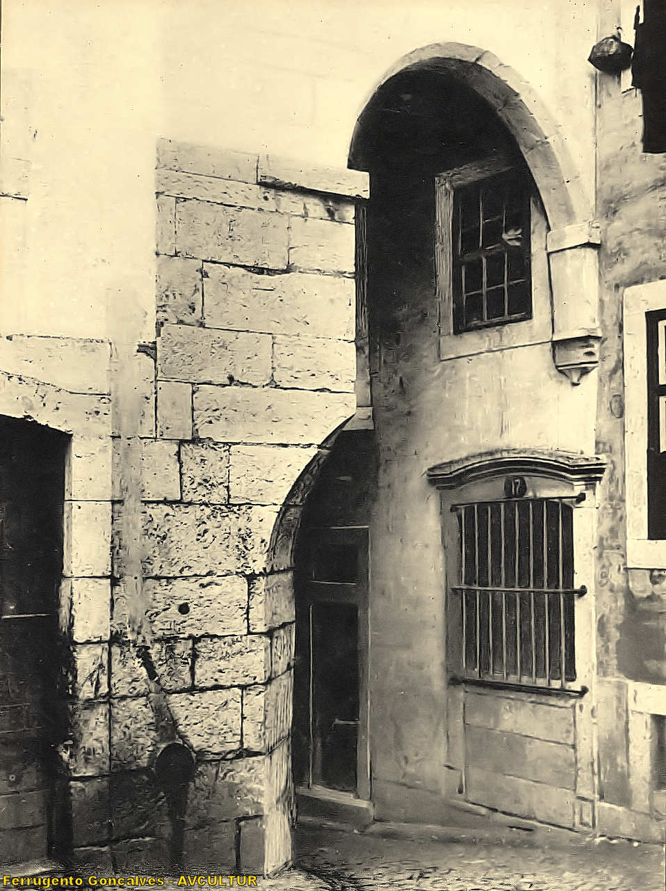 ALFAMA – Becos tortuosos e íngremes. Arcos, postigos, poiais em flor... Sombras de encruzilhadas. Sordidez e pitoresco. Alfurjas, onde raro entra o sol, e reina, cantando, o Triste-Fado. – Foto Ferrugento Gonçalves.