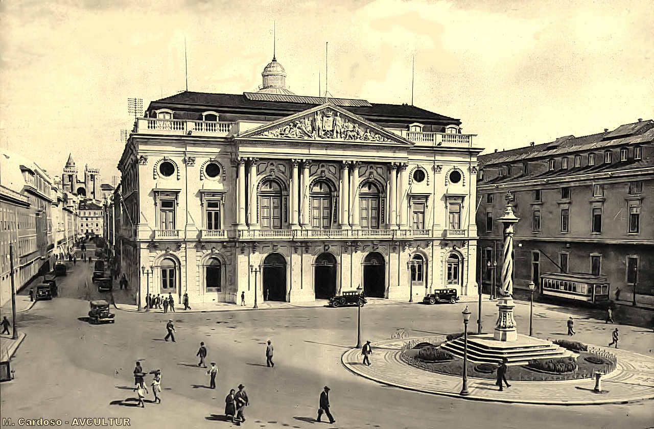 frente ao edifício da «Câmara Municipal», de sóbria e equilibrada