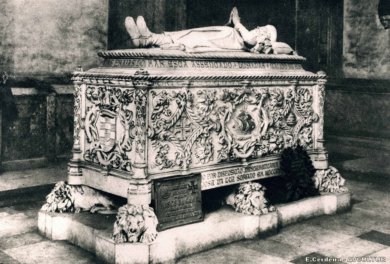 JERÓNIMOS – TÚMULO DE VASCO DA GAMA – Sendo os «Jerónimos» o Panteão das grandes figuras nacionais, não podia deixar de abrigar os restos do grande navegador que, descobrindo as Índias, deu a Portugal os meios de erigir o famoso monumento.