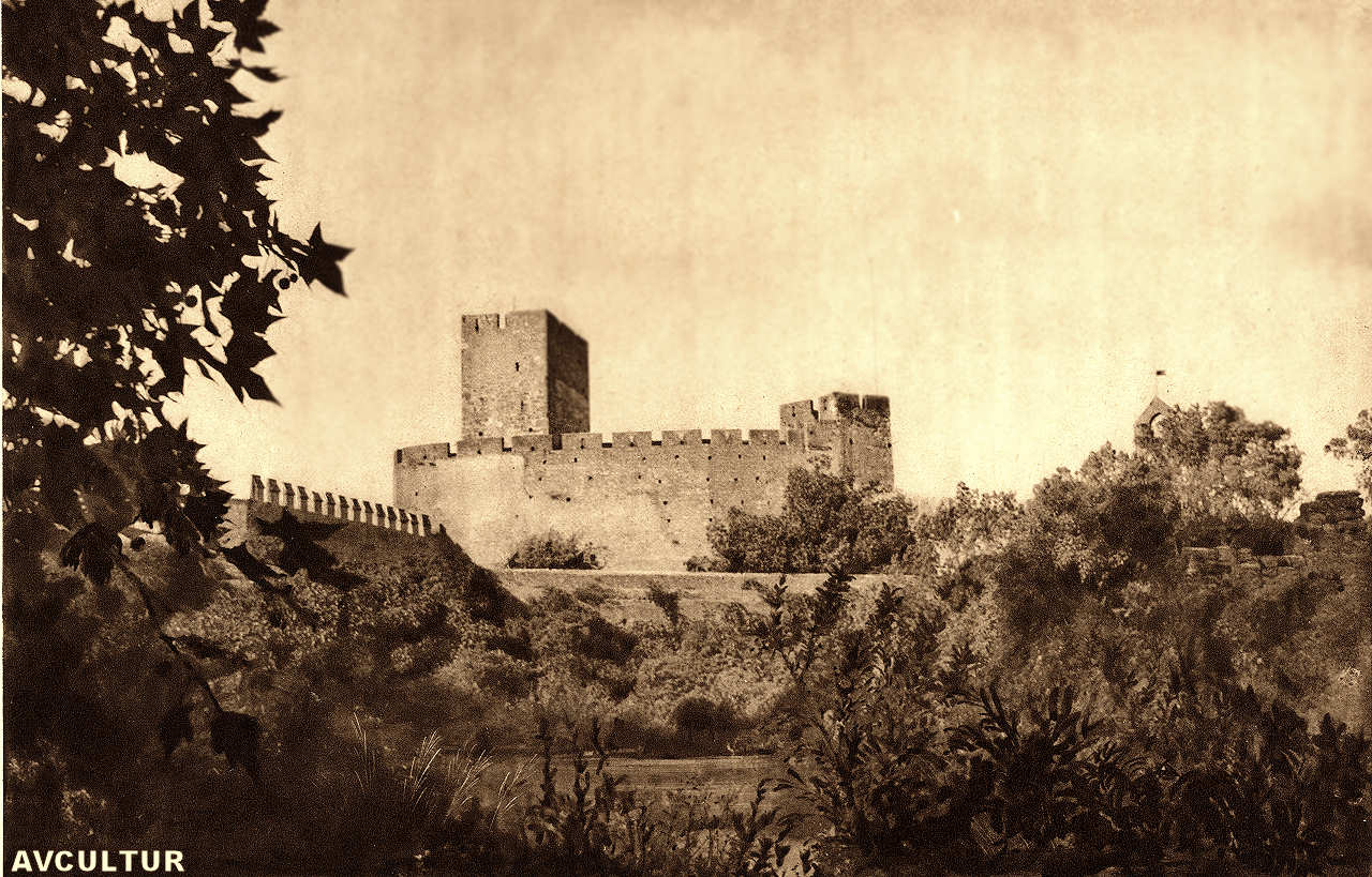 A alcáçova primitiva projectando nas nuvens a sua bela e alterosa torre de menagem.